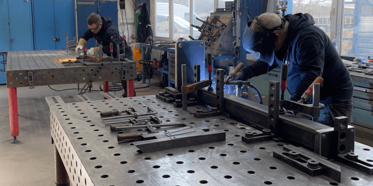 Fertigung einzelner Baugruppen über 3D Schweißtische Großformat, bis zu einer Gesamtlast von 5 Tonnen möglich.